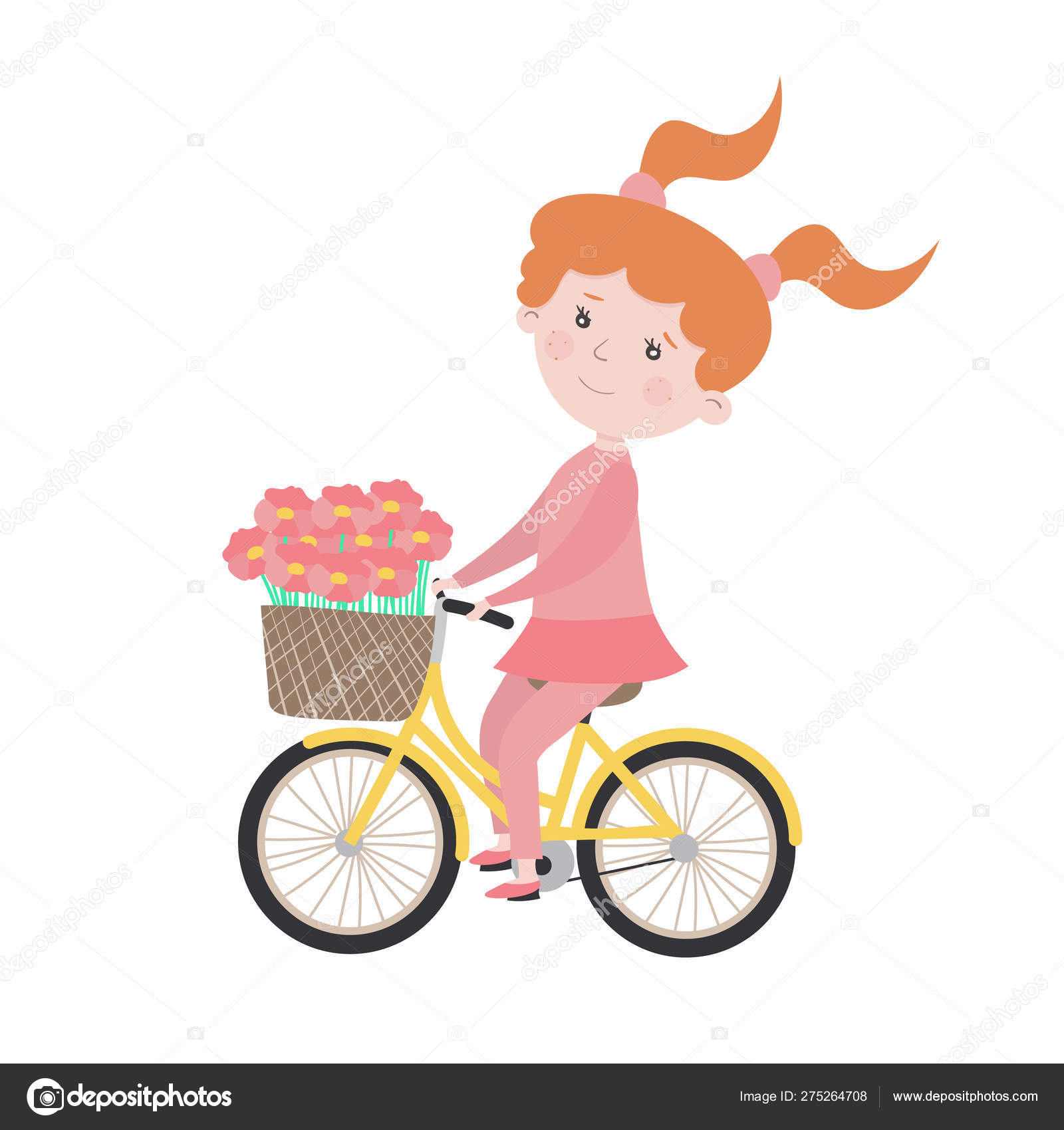 女の子 自転車 イラスト 美しい ベクトル イラスト 自転車 女の子 花 Canstock
